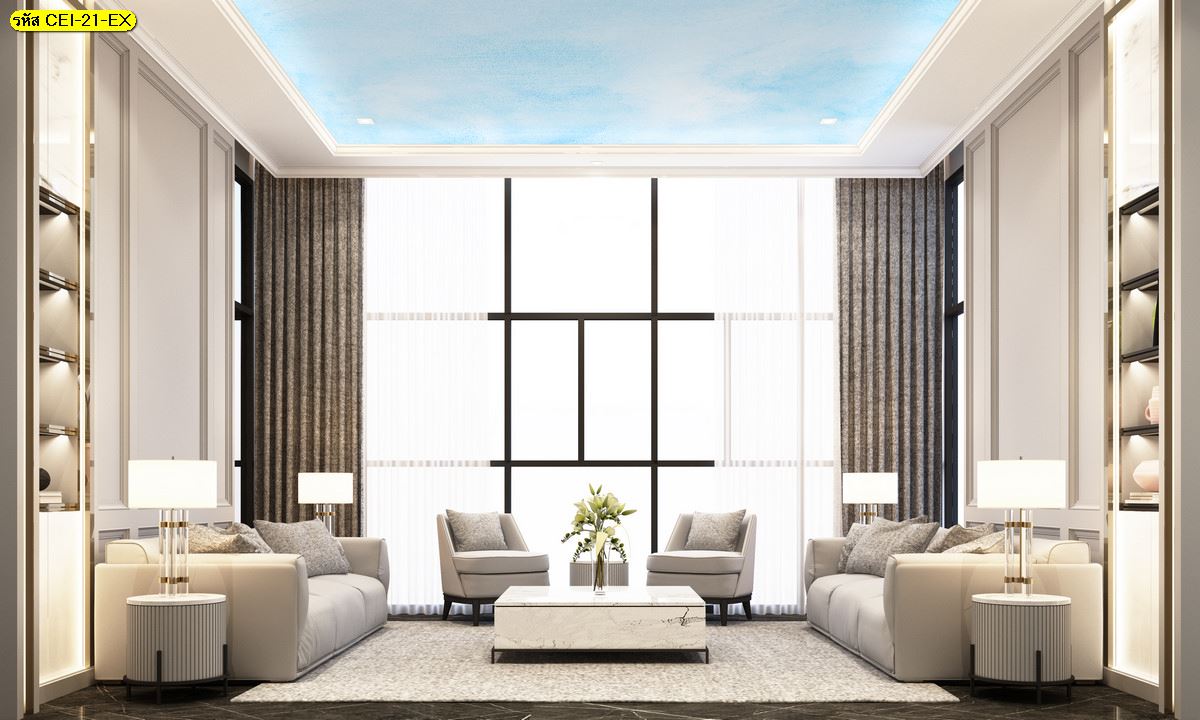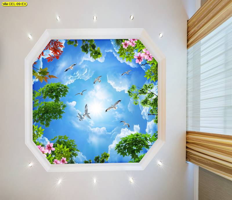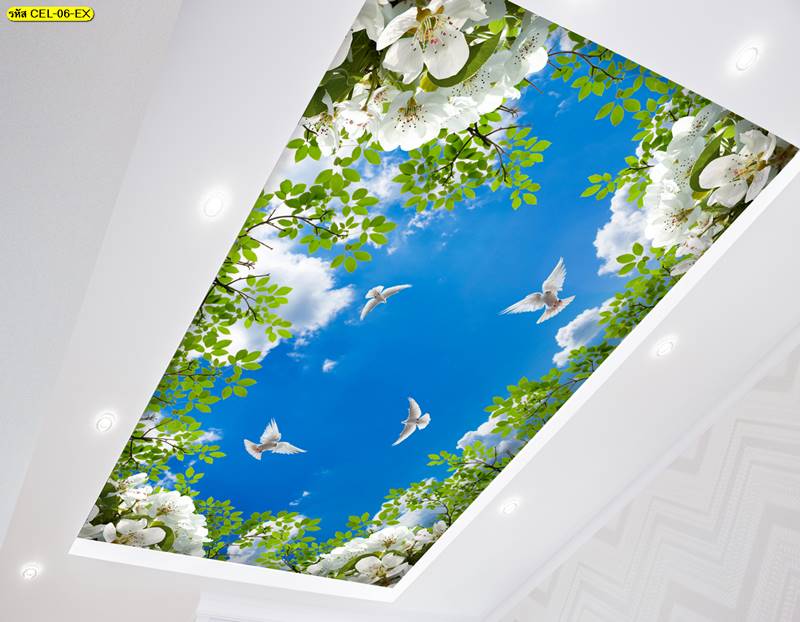 มีทั้งลายท้องฟ้าสดใส เมฆสีฟ้า ท้องฟ้ายามค่ำคืน ดวงดาว หรือแม้แต่ลายศิลปะแบบหรูหรา เพื่อสร้างมิติให้เพดานโดดเด่นไม่ซ้ำใคร