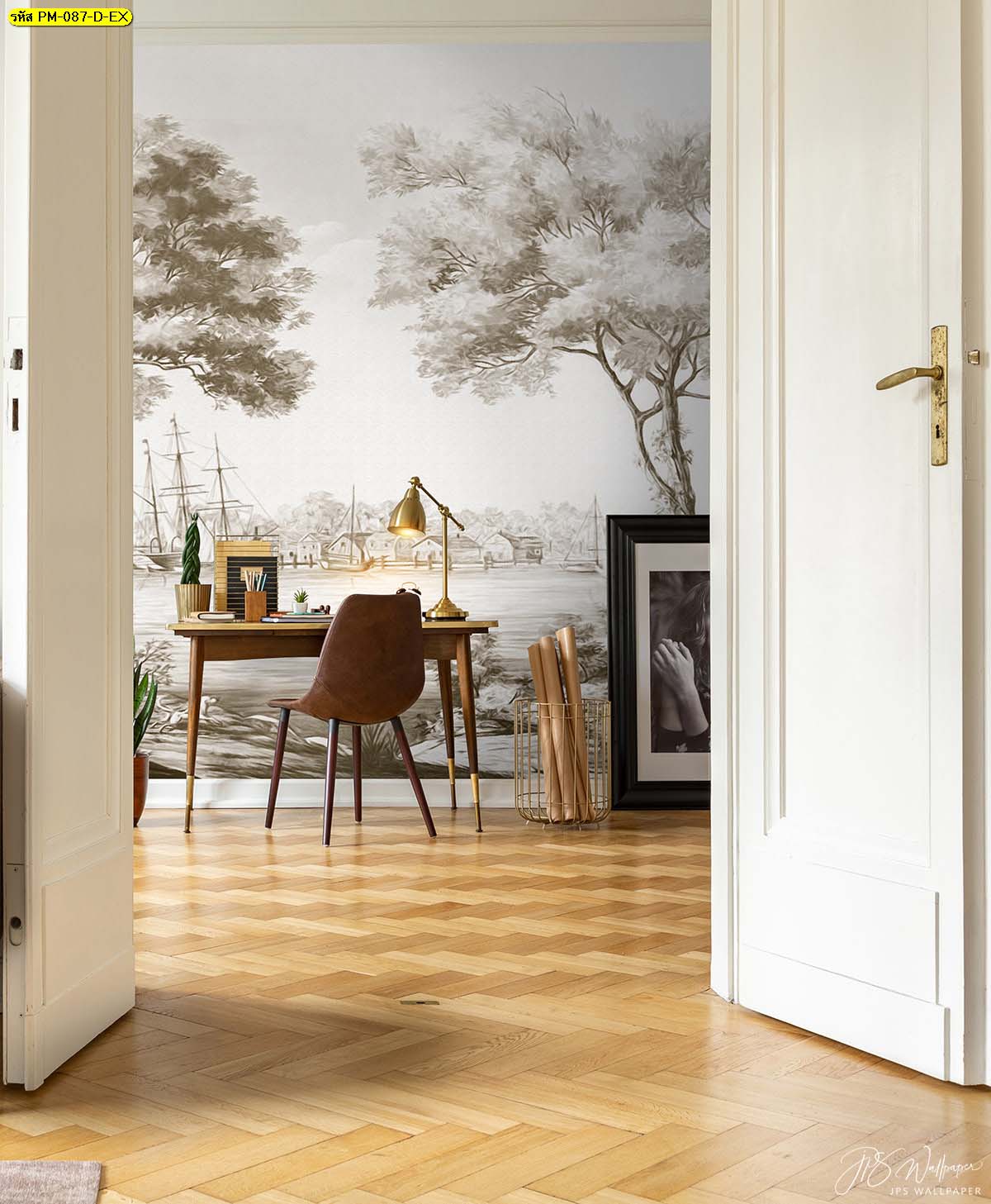 เพิ่มบรรยากาศในห้องทำงานด้วยวอลเปเปอร์ภาพวาดลายสวนป่ายุโรปโทนสีเย็น